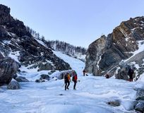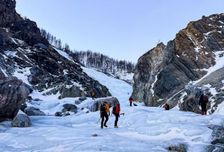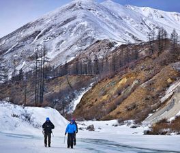 Стартуем из г. Иркутск в 7:00 от сквера Кирова (ул. Ленина 14Б), едем в посёлокмонды, пересекаем погранзону (Республика Бурятия), 56 часов в пути с учётом остановки на обед в Кырене или на стрелке р. Белый Иркут. Проверив рюкзаки и упаковав вещи, идем к базовому лагерю, который расположен на стрелке рек Мугувек и Белый Иркут. По желанию, можно воспользоваться услугой заброски до лагеря. На квадроцикле могут привести ваш рюкзак к лагерю или вас самих. Мы советуем отдать рюкзаки для заброски, а вам, для лучшей акклиматизации, пройтись пешком с легким рюкзаком до лагеря.Небольшой уклон тропы по льду р. Белый Иркут не вызовет много усталости, а невероятные виды ущелья и покрытого льдом Иркута впечатлят и вдохновят вас! Достигнув лагеря, располагаемся,ужинаем, обсуждаем планы на ближайший день и слушаем технику безопасности.