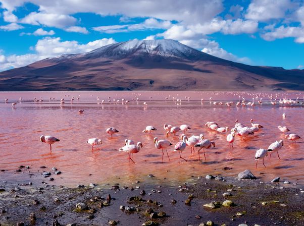 - Озеро Колорадо и розовые фламинго: Волшебные пейзажи озера с розовыми оттенками и большими стаями фламинго.