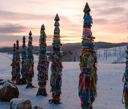 Что еще ждет Вас сегодня? Обед по-походному, знаменитый пузырьковый лед, известный всему миру по многочисленным снимкам в интернете, катание на коньках по зеркальной поверхности Байкала (рекомендуем взять коньки с собой заранее) и знакомство с островом Огой, длина которого составляет около трех километров, а ширина - не более пятисот метров. Название острова по-бурятски обозначает безводный, что соответствует действительности: на нём нет ни рек, ни ручьев, ни родников. С 2005 года остров стал настоящим местом паломничества туристов со всего света, так как здесь построили буддийскую ступу Просветления.