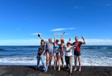 Встреча группы турлидером нашей команды в аэропорту Елизово (Петропавловск-Камчатский) до 13:00. Вылететь из Москвы нужно самолетом 15.08. Забрасываем вещи в гостиницу и на заказном транспорте, не теряя ни минуты, отправляемся на Халактырский пляж. Отдыхаем после перелета на океане, гуляем по черному вулканическому песку, ловим набегающие волны в свои объективы и ботинки (а особо отчаянные в плавки).