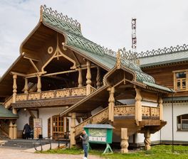 усадьбы и терема. В одном из них расположен местный ресторан, в других — Музей водки и коллекция матрешек. Третьи отданы под комфортное размещение. Каждая постройка — произведение искусства;