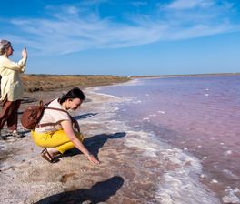 - Розовое озеро, по поверхности которого можно пройти и испробовать ее на прочность).