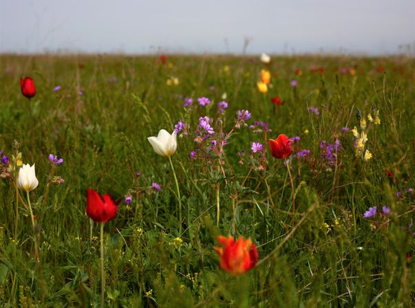 - Разноцветные поля цветущей весенней степи - розовые кусты тамариска, дикого льна и ароматного чабреца с полынью!