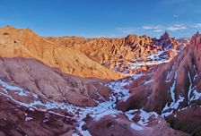 Встреча гостей в аэропорту, согласно расписанию. Небольшой кофе брейк и отправление к побережью озера Иссык Куль, через ущелье Боом. Обед. Далее посещение 2-х самых популярных каньонов на побережье Иссык Куля. Каньон Марс и каньон Сказка. Данные локации подарят вам невероятные виды и эмоции. Каньоны богаты своим необычным рельефом, каждый человек, в зависимости от своей фантазии, может разглядеть здесь десятки причудливых фигур, и конечно же в зимнее время это по своему красиво.