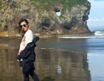 - Погуляем по пляжу с чёрными скалами