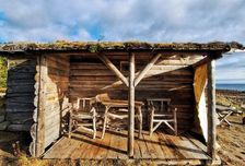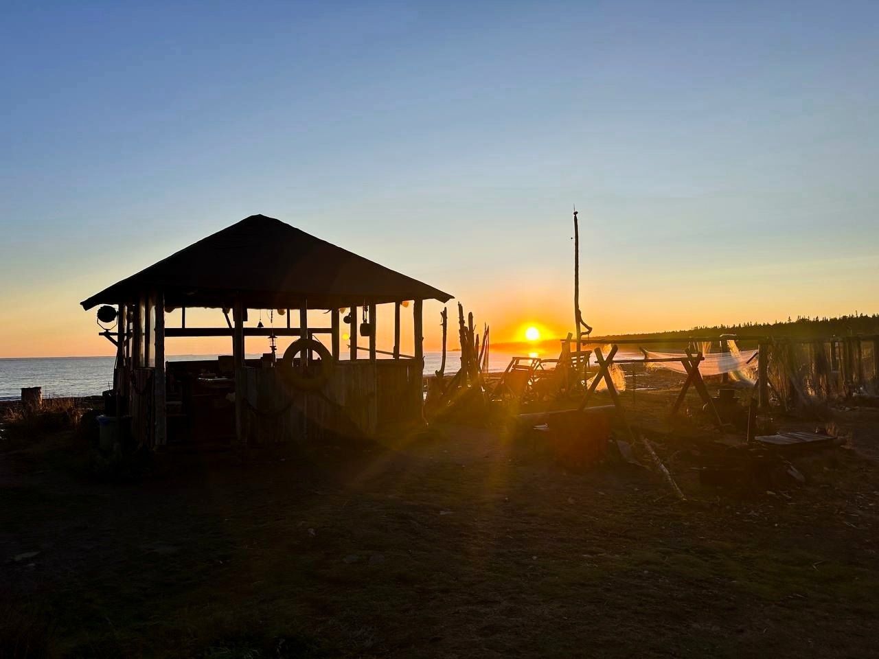 Заселяемся в домики на побережье, в уютные комнаты с печкой, запахом дерева, домики от 2 до 3 мест. У каждого домика уютная зона отдыха с навесом.