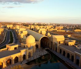 Финальная остановка — современный Туркестан с его уникальным комплексом. Здесь вас ждет Туркестанская Венеция, улица торговцев, ремесленников и магазины. По желанию можно посетить 8D-кинотеатр Алтын Самрук для виртуального путешествия по достопримечательностям Казахстана.