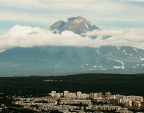 Поднимемся на Никольскую сопку, с которой открывается великолепная панорама на город, Авачинскую бухту и домашние вулканы: Авачинский, Корякский, Козельский.