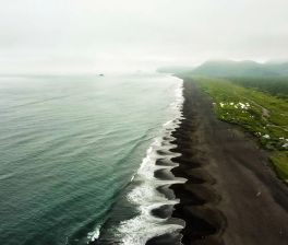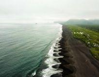 - Пляж с древним вулканическим песком