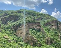 После первой локации автобус стал медленнее ехать, затем отключился кондиционер, далее задымился. Нас высаживают в открытом поле под палящим солнцем. Через несколько минут к нам возвращается другой автобус этой же фирмы и нас пересаживают туда же. Автобус полный, едем примерно час стоя. Далее, пока мы обедали в ресторане, приехал второй автобус из Еревана на 19 человек. После обеда мы размещаемся в большом автобусе, потому что не вошли в микроавтобус. Наши аудиогиды не работают, так как подключены на другую волну. Вторую часть экскурсии мы проводим с другим гидом, поэтому такое сумбурное впечатление.