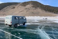 Поездка через Тажеранские степи Затем отправляемся в путь к Байкалу. Едем на микроавтобусе через знаменитые Тажеранские степи — открытые пространства с холмами и каменными останцами. Этот ландшафт совершенно не похож на привычные тайгу и леса Сибири. Каждый новый поворот дороги открывает перед вами захватывающие виды: орлы, блеск солнца на волнах Байкала и бескрайние горизонты. Путь займёт около 250 км, но время пролетит быстро благодаря необычным пейзажам и интересным историям.