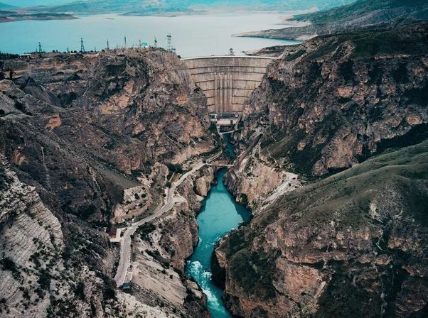 Следующая точка маршрута — смотровая Тёщин язык, с которой вы рассмотрите самую высокую арочную плотину в России — плотину Чиркейской ГЭС, парящих сверху орлов и реку Сулак.