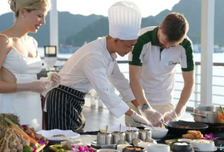 Роскошные каюты с личными террасами, панорамным видом и ванной Трёхразовое питание по системе «шведский стол» в ресторане deluxe Насыщенный проверенный маршрут с разнообразными активностями Белоснежные песчаные пляжи в уединённых уголках залива Лан Ха