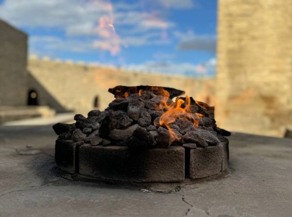 - Затем мы посетим Храм Огнепоклонников Атешгях, возведенный зороастрийцами в I веке до нашей эры. Это место поражает своим природным феноменом — языками пламени, вырывающимися прямо из-под земли без дополнительного источника топлива. Храм остается памятником религиозного и архитектурного наследия.