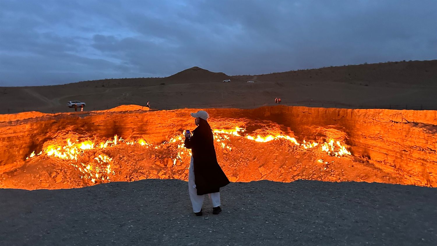 Когда вы добираетесь до Дарвазы, солнце уже клонится к закату или скрывается за горизонтом — и это идеальное время для знакомства с кратером. Пламя внутри огромной воронки становится ярким, огонь шумит, воздух возле края тёплый. Стоять рядом — завораживающе. Каждый воспринимает это место по-своему: кто-то — как природную загадку, кто-то — как зрелище, кто-то — как символ бесконечной силы природы.