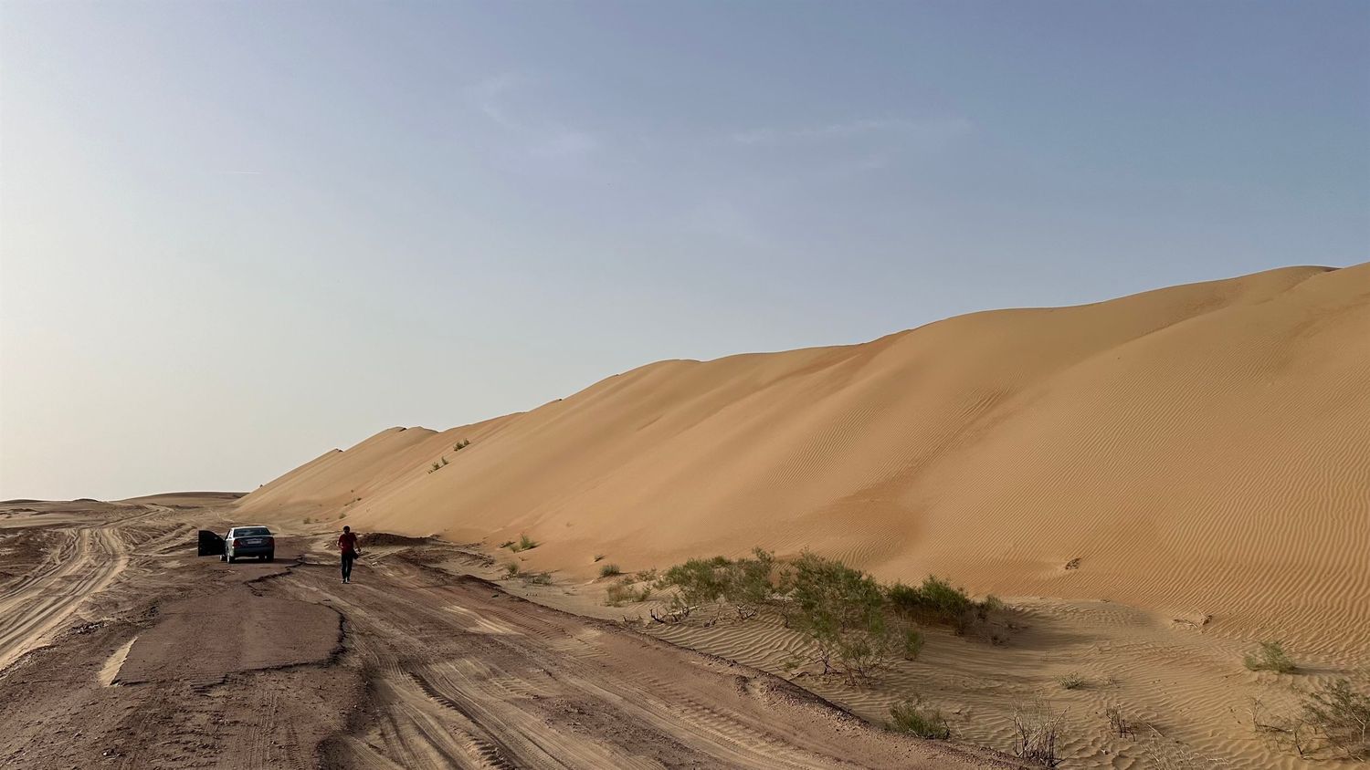 После насыщенного знакомства с историей начинается путь в Каракумы. Дорога длинная, но ровная и спокойная, а пустынный ландшафт постепенно меняется от зелёных пятен оазисов к сухим, золотистым линиям песка. Пустыня раскрывается постепенно: широкие пространства, мягкие барханы, ветер, солнце и полное ощущение свободы.