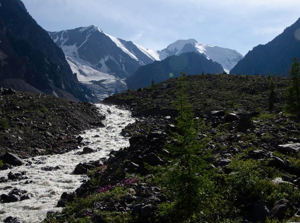 Актру - это и горная вершина высотой 4040 метров, и ледники, и река, и альплагерь..