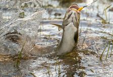 - В середине пути, начиная с сотого километра, по берегам появляются подземные ключи (дьуктэуута) и с этого места начинается отличная рыбалка. Многие приезжают сюда только ради рыбалки. Рыба: щука (сордон, боро5ой), окунь (алыhар, хаахынай), налим (сыалыhар), сиг (майа5ас), ленок (майа5ас), хариус (дьар5аа), тугунок (сыа балык), сорога (кыhылхарах), кустээх, ерш (таас бас), подкаменщик и редко осетр (хатыыс) и таймень(бил)