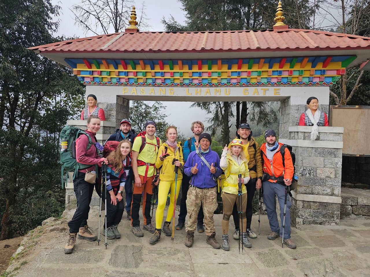 Гид встречает нас в аэропорту Катманду. Прибыть нужно до полудня или накануне. Заселяемся в гестхаус, обедаем, обсуждаем предстоящую программу и проверяем снаряжение. Если экипировки не хватает, можно докупить её здесь же, на одном из рынков туристического района Тамель. Магазинов много — есть как недорогие реплики, так и оригинальные товары. Ложимся спать пораньше, нас ждёт ночной подъём.