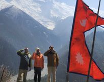 - Вид на три восьмитысячника: Аннапурна, Манаслу и Дхаулагири