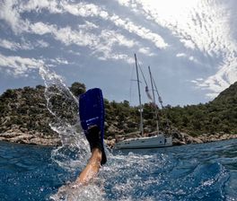 Представьте себе настоящий круиз на белоснежном парусном катамаране: активная программа, включающая в себя яхтинг, катание на сапах, снорклинг, ровный идеальный загар, в благоприятную погоду мы ловим тунца и добываем морепродукты, меню разнообразное и вкусное, а бокал белого игристого в руке искрится пузырьками! Мы идём под парусом в открытом море, посещаем островки и удивительные бухты, смотрим на Турцию с другой стороны, ведь она немного похоже на Италию со своими узкими уютными улочками, немного на Грецию со своими приятными домами с белоснежными крышами.