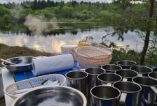 Приезжаем на поляну у реки в пос. Бриляково, обедаем и укладываем личные вещи в гермоупаковки.