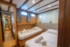 Классический турецкий гулет в современном прочтении 2025 года постройки: большой, комфортабельный, безопасный и удобный. На яхте есть каюты Double с двуспальными кроватями и Twin с раздельными. В каждой каюте личный санузел с душем.