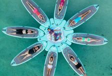 -Катание на сапбордах посреди океана с возможностью наблюдения сверху за подводным миром и большими черепахами, а также групповая съемка на дрон