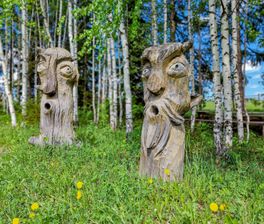 Шлют к чертям? Радуйтесь: мы знаем, где они живут! Персонажи парка чуди, лешие, йомы, богатыри, герои из местных сказок появились из причудливых коряг и стволов деревьев. Прогуляемся по парку, собрав собственный бестиарий впечатлений!