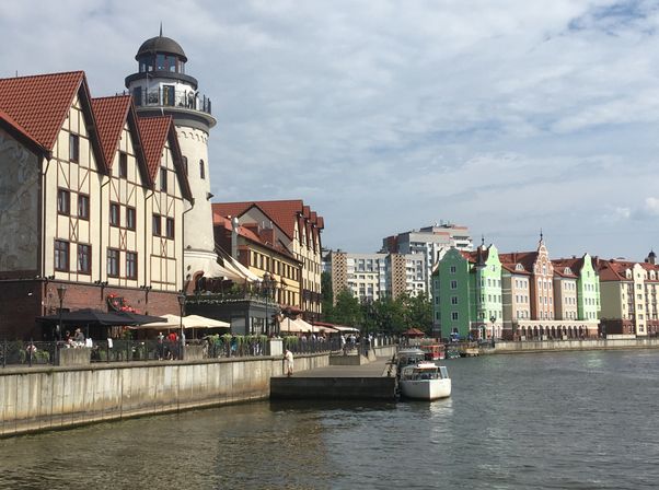 /Центральная площадь, где до Xiii века располагалось прусское поселение Твангсте и в 1255 году Тевтонский орден заложил будущий замок, названный Кёнигсбергом. Остров Иммануила Канта, Кафедральный собор — главный исторический символ города, построенный в стиле балтийской готики в Xiv веке; Центр этнографического туризма: Рыбная деревня; Башня Дона - часть сохранившегося оборонительно-валового сооружения немецкой постройки; Амалиенау - район немецких вилл, сохранивший атмосферу довоенного Кёнигсберга./