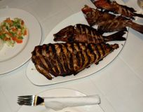 рыбалка на закате, со свежайшим ужином барбекю с улова.