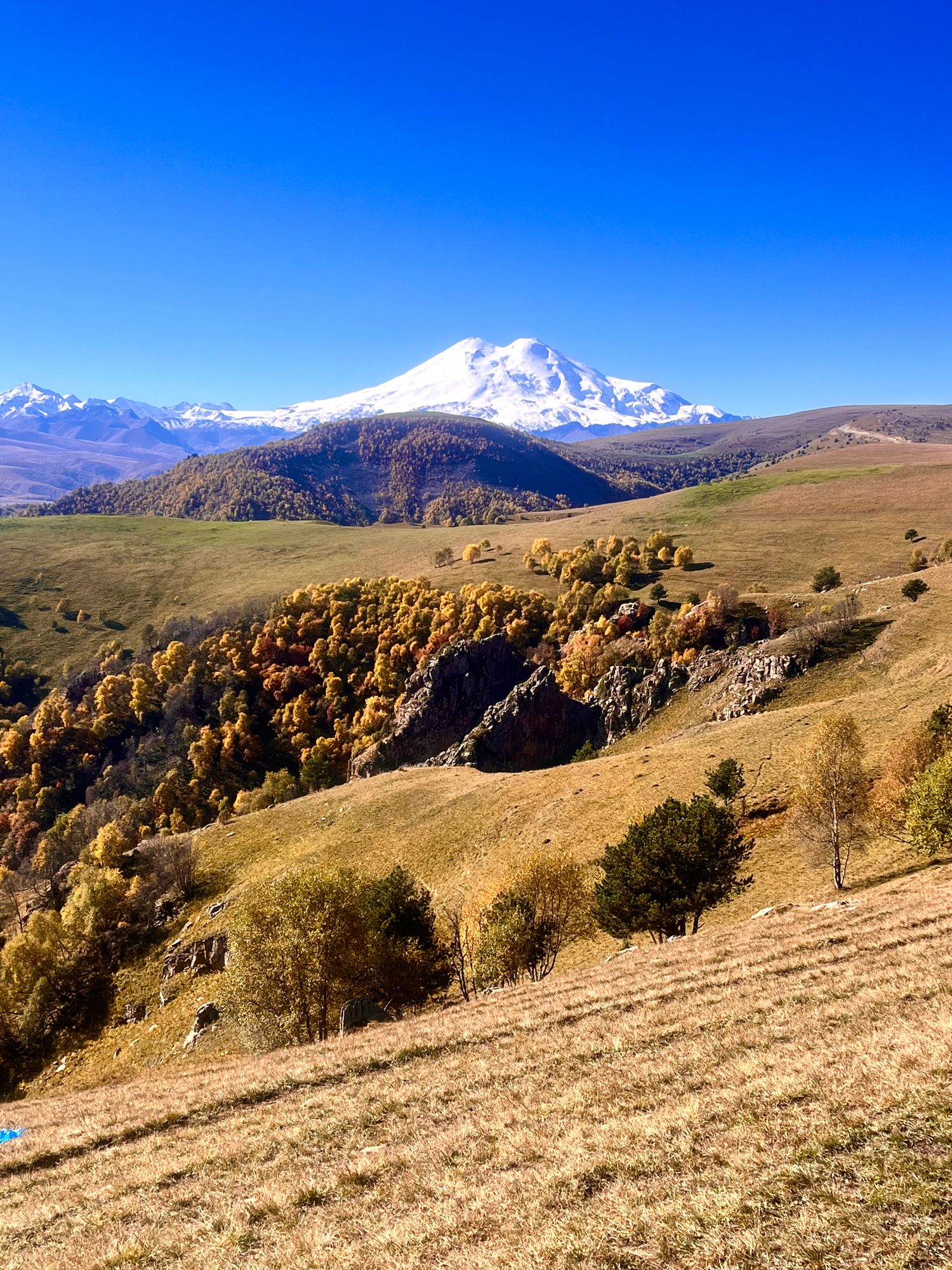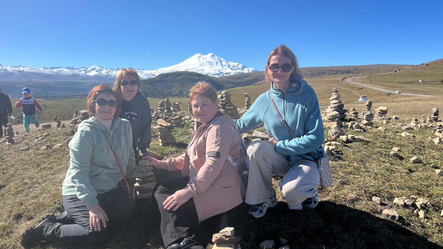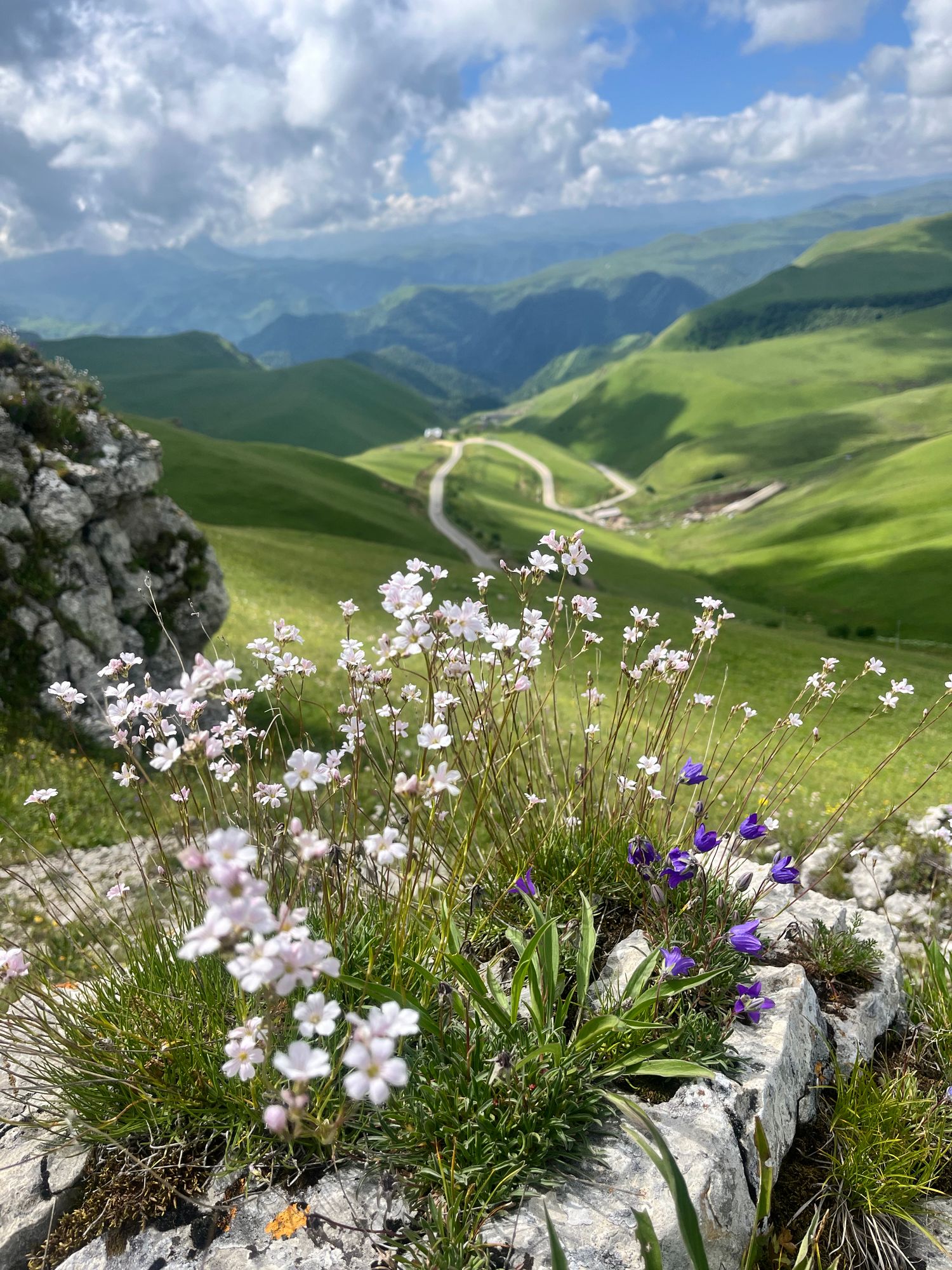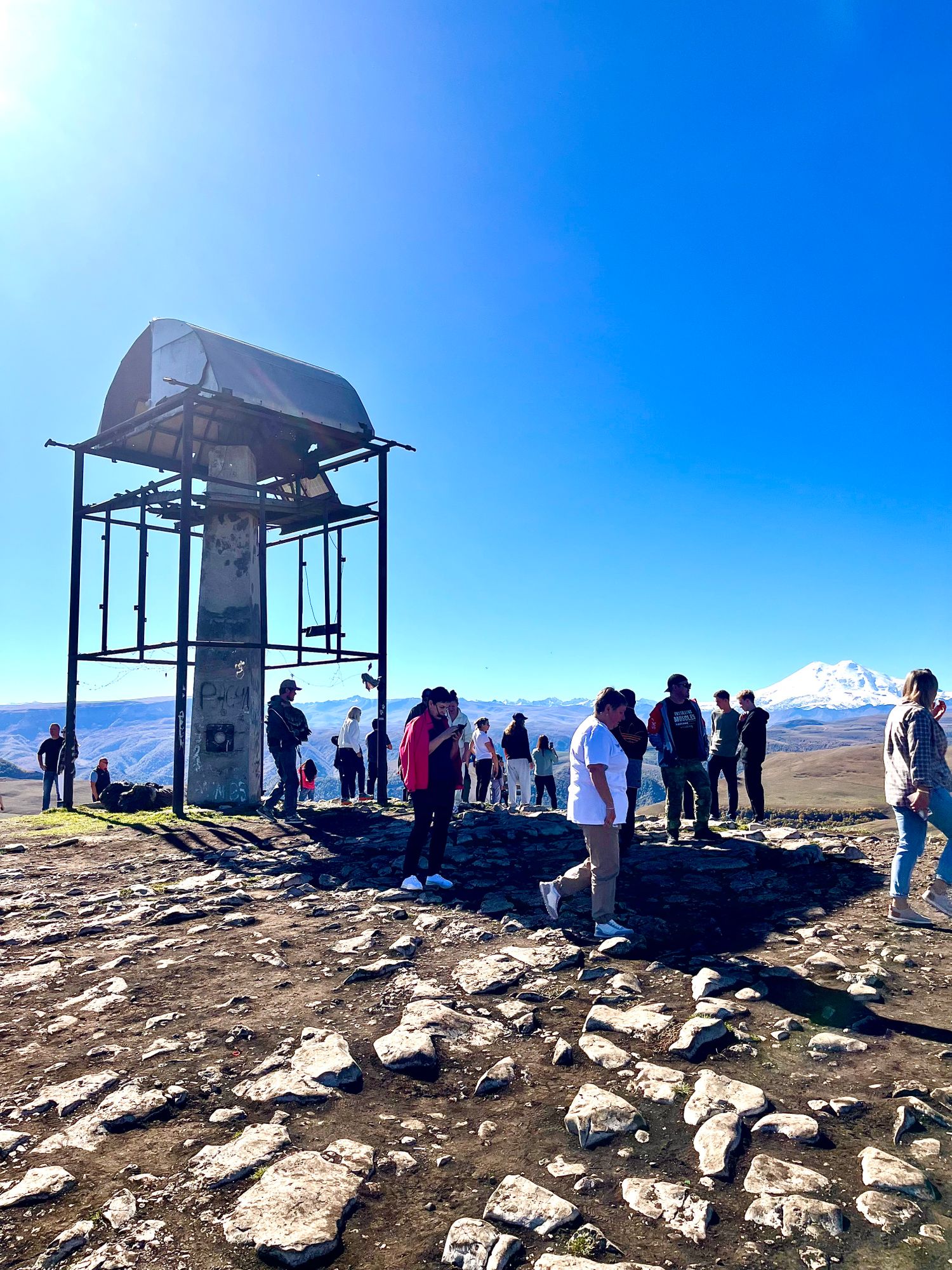 Плато Шаджатмаз - расположено оно на высоте около 2000 м. Отсюда открываются панорамные виды на весь регион Кмв , Большой Кавказский хребет и Эльбрус.Сооружения с белыми куполами на горе по другую сторону дороги — Кавказская горная обсерватория Гаиш Мгу.