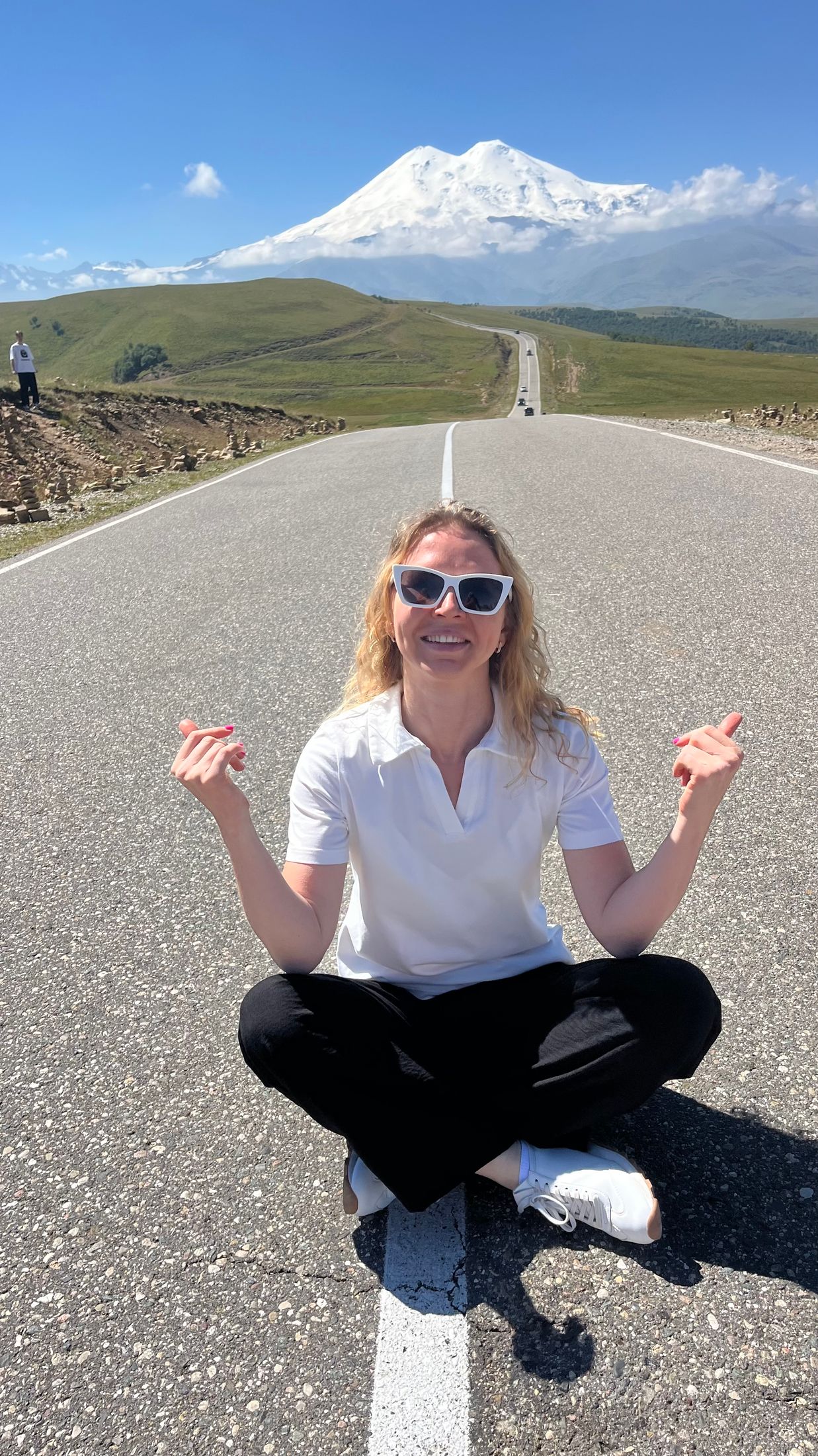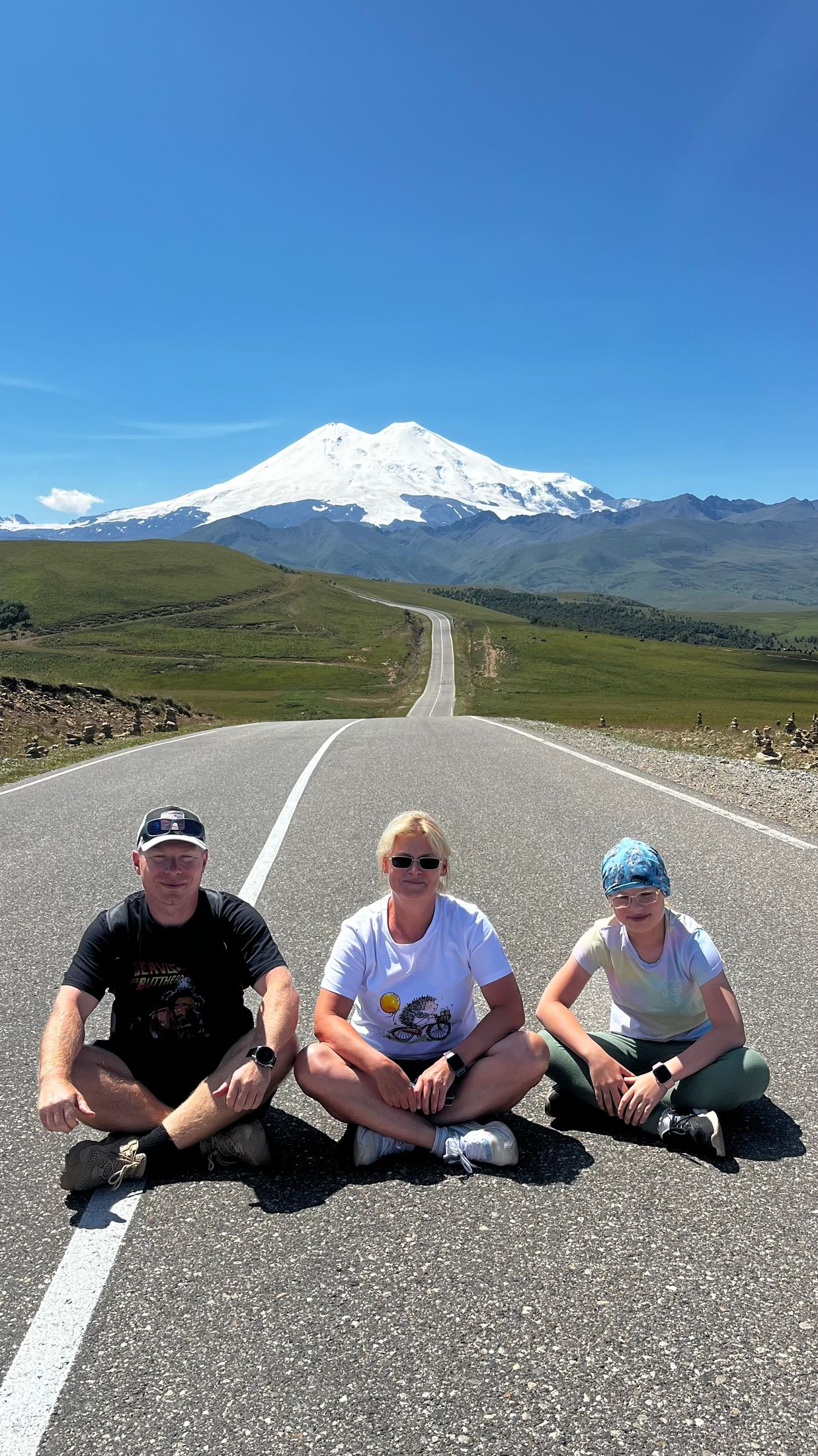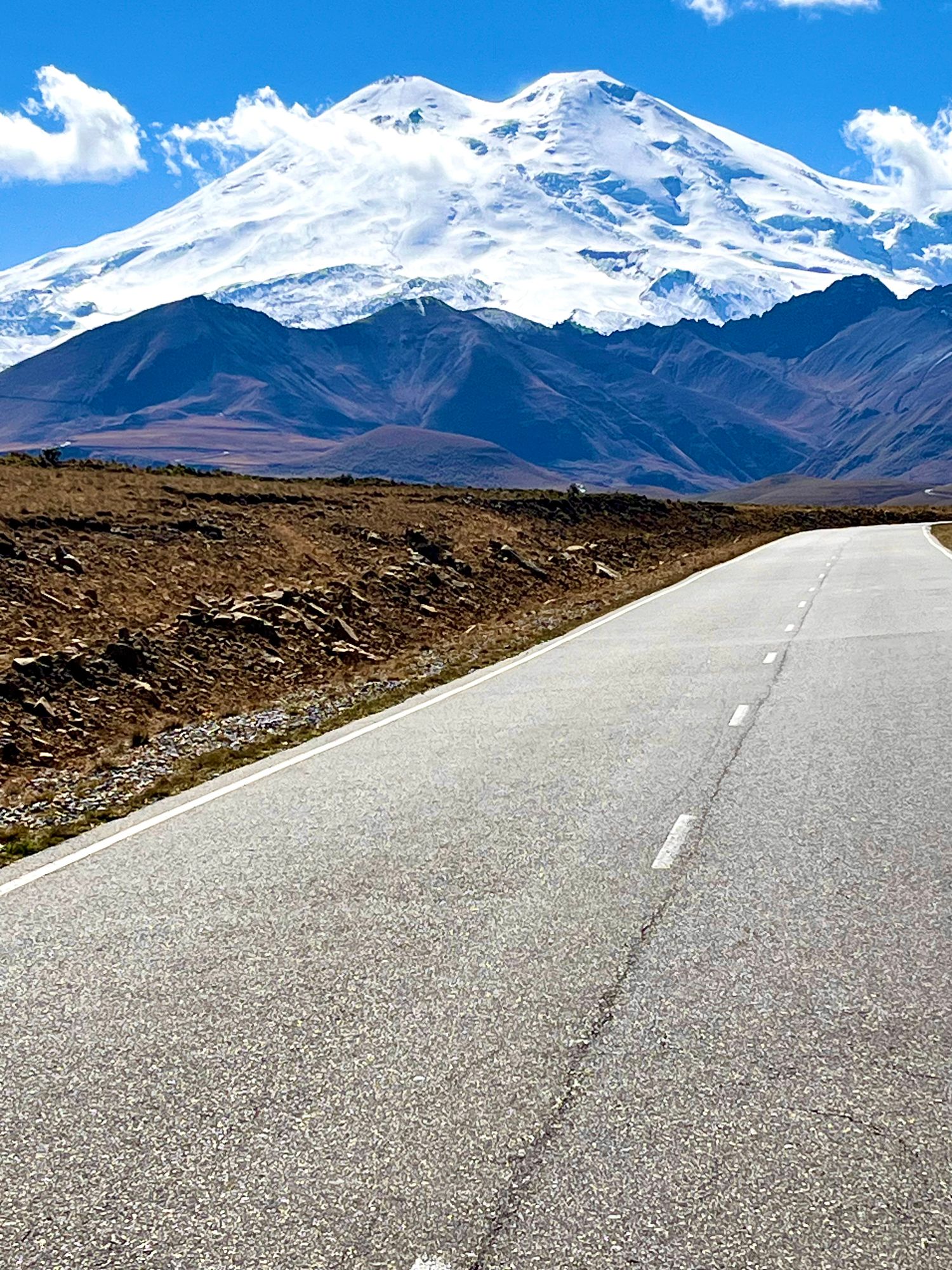 Фотолокация ( инстаграмная дорога)на асфальте с видом на Эльбрус.