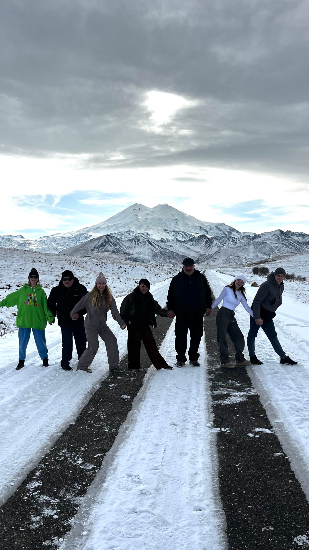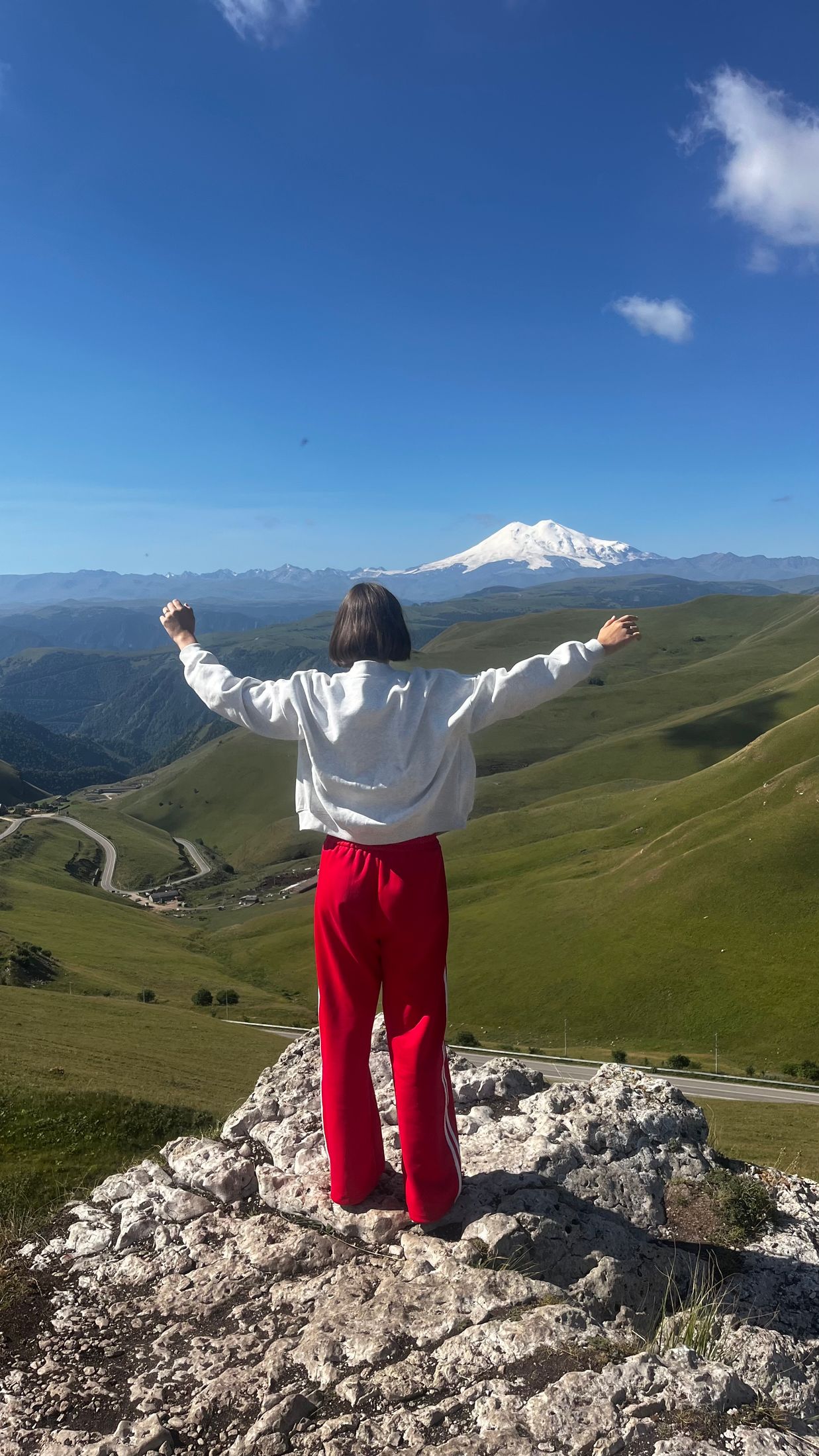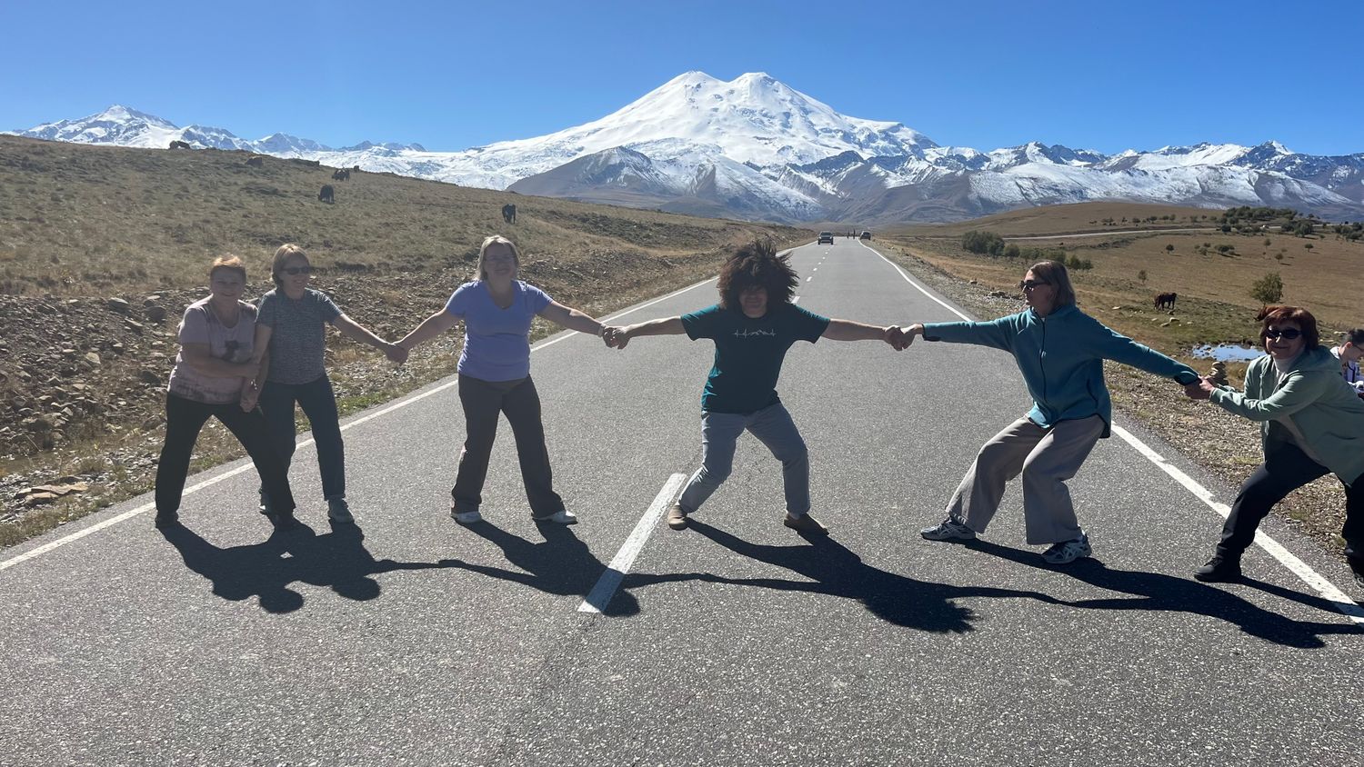 Фотолокация ( инстаграмная дорога)на асфальте с видом на Эльбрус.