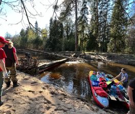 13:30 — Выход на реку. Проходим стремительно протекающий мельничный порог