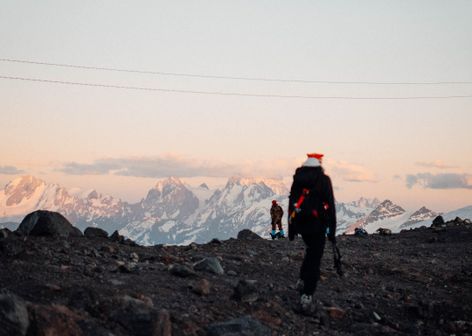 По дороге в горы знакомимся друг с другом, наслаждаемся видами, ну или отсыпаемся. Приезжаем в Терскол, размещаемся в отеле. За ужином ознакомимся с подробным планом мероприятия. Команда гидов проведет брифинг по подготовке к восхождению. После ужина будет возможность погулять по окрестностям ночного курорта и зайти в кофейню. По необходимости зайдем в прокат за снаряжением для треккинга.
