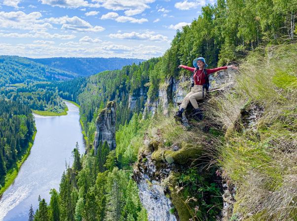 Поднимемся на Усьвинские столбы Вы окажетесь на самой кромке каменной стены и ощутите, как душа замирает от благоговения перед высотой и неописуемой панорамы на уральские просторы: там простирается бескрайнее лесное море, петляет река и гордо вздымается самый известный останец Усьвинских столбов Чёртов палец. Если вам кажется, что вы уже где-то видели эти места вам не кажется! Здесь снимали Географ глобус пропил, сцены из фильма Время первых и Сердце Пармы. Стоя на скале понимаешь, что эти пейзажи и правда сыграют что угодно, справятся с любой задачей: от романтической комедии до хоррора.