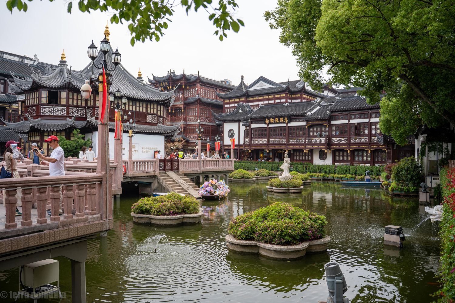 Первым делом отправляемся в знаменитые Сады Юйюань — это настоящий оазис тишины в самом центре города. Каменные мостики, карпы в пруду, драконы на крышах — здесь старый Китай оживает прямо на глазах.