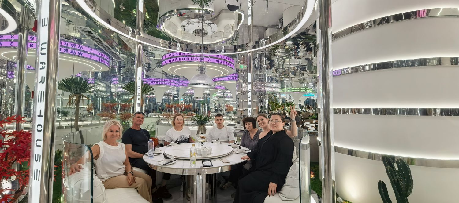Вечером — ужин в ресторане с панорамным видом. Шанхай рассыпается под ногами тысячами огней, и этот момент хочется растянуть навсегда.