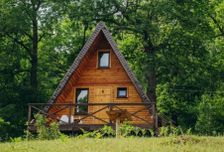 - Турбаза в лесу на опушке у реки;