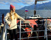 Изучив Кунашир, отправимся на остров Итуруп, но уже на новом виде транспорта на теплоходе! Итуруп славится своими горячими источниками — природными ванночками, в которых так приятно лежать после активной прогулки на очередной вулкан. Прогуляемся на вулкан Баранского, и конечно, увидим столь желанные для многих — белые скалы Итурупа и черный вулканический песок. Да не просто увидим! А встанем лагерем на ночевку у их подножия и на берегу Охотского моря!