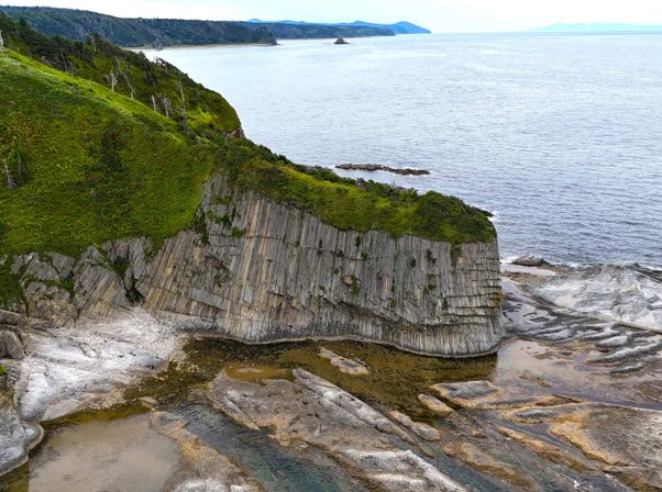 На острове Кунашир будем купаться в Тихом океане, пробираться через бамбучник на вулкан Менделеева, чтобы посмотреть на активные серные фумаролы, гулять по огромному кратеру вулкану Головнина и конечно, увидим очень необычный мыс Столбчатый, где жгучая лава, встречаясь с океаном, застыла в виде столбов базальта!