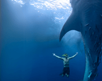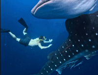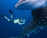 Китовые акулы. Всего 6-8 мест на Земле, где можно с ними плавать. Лучшим считается Филиппины, но я пробовал и там, и здесь — и здесь в разы круче: ни толп туристов, ни суеты, только мы и величественные гиганты.