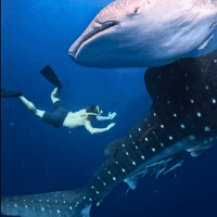 Китовые акулы. Всего 6-8 мест на Земле, где можно с ними плавать. Лучшим считается Филиппины, но я пробовал и там, и здесь — и здесь в разы круче: ни толп туристов, ни суеты, только мы и величественные гиганты.