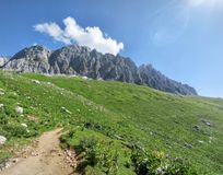 Тропа сначала ведёт по альпийским лугам, а затем выводит к хребту Каменное море настоящее море камней, огромных глыб и сланцев, которые под воздействием сил природы навеки замерли на плато.