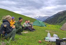 В Теберде начинается настоящая подготовка к походу: получаем групповые модули с продуктами, упаковываем рюкзаки, перекусываем, фотографируемся на старте — и в путь!