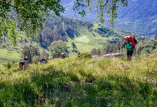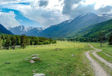 Первый участок маршрута проходит по живописной тропе вдоль горной реки с кристально чистыми потоками, сквозь хвойный лес и альпийские луга. Когда-то здесь пролегала одна из веток Великого Шёлкового пути.