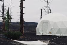 По приезде ужинаем, знакомимся и кайфуем. Камчатка ни на что не похожа. А это место просто волшебное! Девственная природа и только наш глэмпинг в окружении вулканов и ярких звезд. Место настолько дикое, что за территорию ходить без сопровождающих запрещено. Можно запросто встретить медведей или других животных.