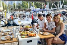 Каждое утро вас ждут питательный завтрак, бодрящий кофе, свежевыжатый сок и спелые фрукты. Днем наш повар с любовью приготовит сытный обед: рыбу или мясо с традиционным турецким гарниром и суп. Поужинать вы сможете как на борту яхты, так и в ресторане на берегу. Мы составляем меню на всё путешествие с учетом индивидуальных предпочтений каждого гостя.