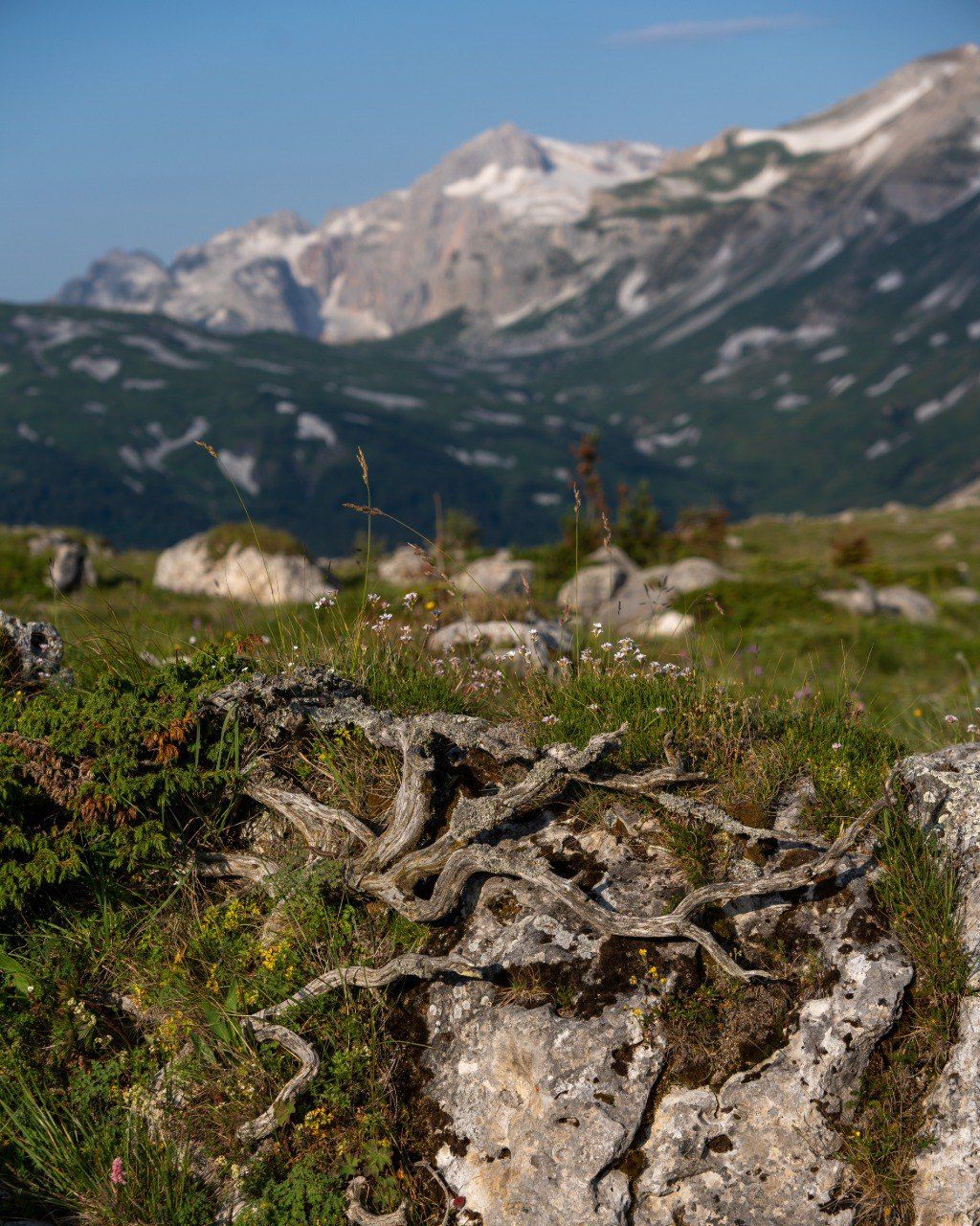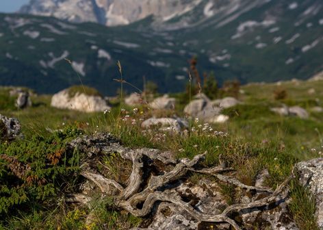 Оштен отличается выраженным альпийским рельефом, создающим захватывающие дух пейзажи. Его склоны круты и скалисты, увенчаны острыми зубцами, которые возвышаются над субальпийскими лугами, покрытыми изумрудно-зеленой травой и яркими цветами.